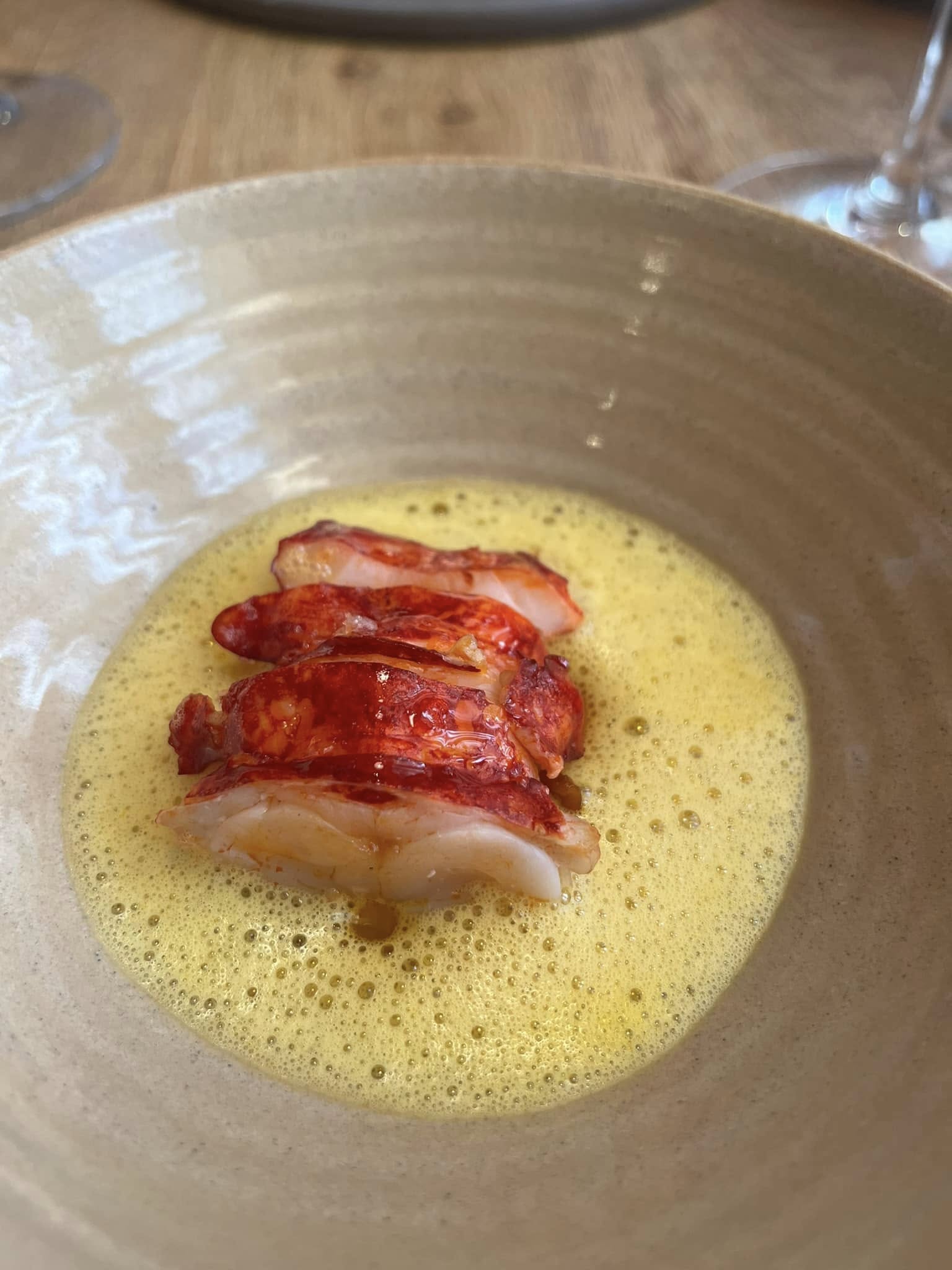 Alimentum er kendt for deres samarbejde med Guldbæk Vingaard. Denne aften var det en 2022 Gentle Pink, der var i fokus overfor en hale af sorthummer med kantarel, gulerod og en fantastisk koncentreret sauce.