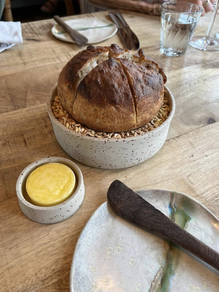 Herefter fik vi serveret deres hjemmebagte surdejsbrød m. smør.