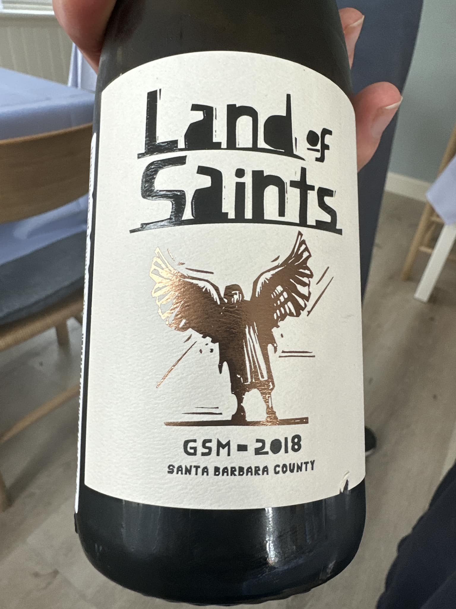 Vin: Land of Saints, Santa Barbara County GSM 2018 med mindelser om let røg og kirsebær. Igen en topgod vin på en menu til den relativt beskedne pris.