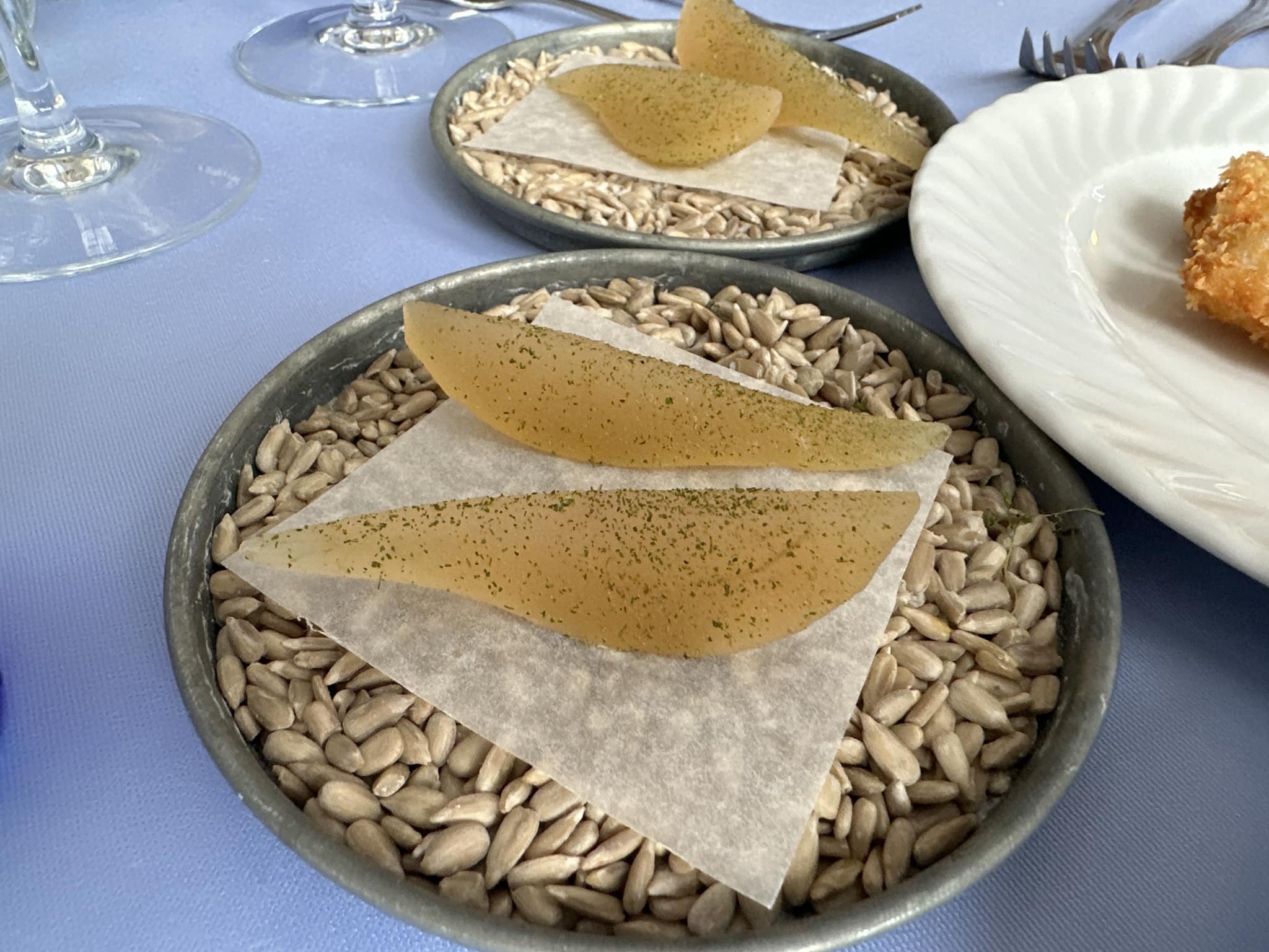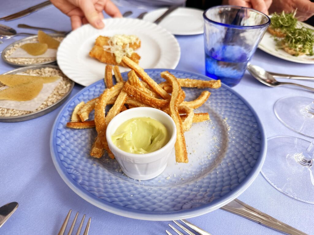 På engang moderne, sommerlige og lette snacks med klare henvisninger til traditionelt dansk køkken. Hertil et sprudlende glas Thierry Fournier Champagne på Chardonnay. Topgod start, der mindede en om endnu mere pære.
