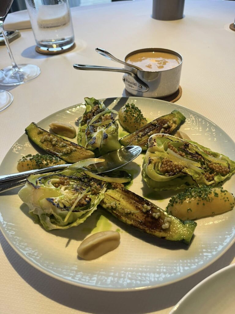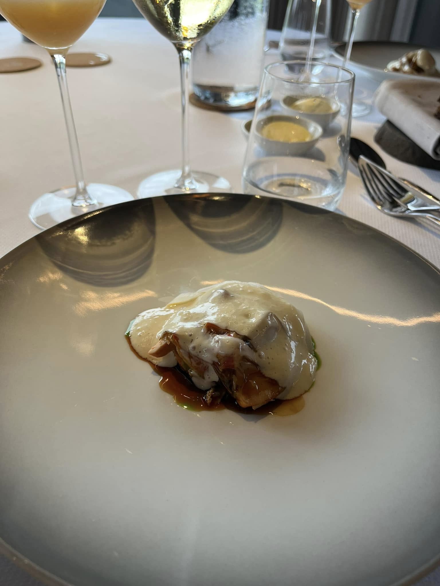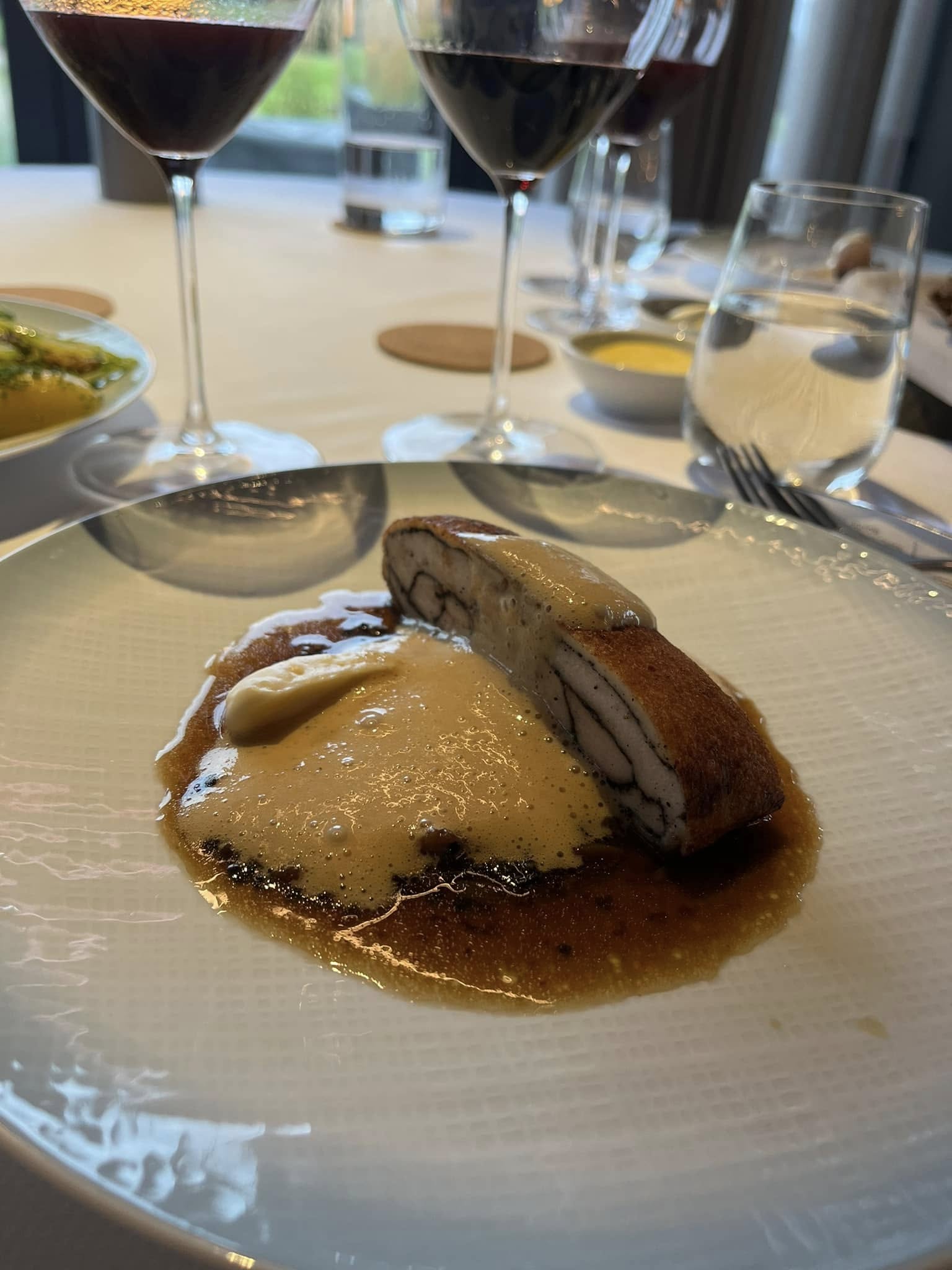 Man kunne måske tænke at kylling lyder kedeligt. Denne ret var alt andet! Den overraskede mig på mange måder. Saftig kylling, med stor smag. Dejlige saucer med rigeligt trøffel. Fadet med de perfekt tilberedte grøntsager var et frisk pust, på en fine dining restaurant. Jeg synes det var hyggeligt, at man skulle dele fadet. En hovedret der har sat sig i mig, og må være en af de bedste jeg har fået.