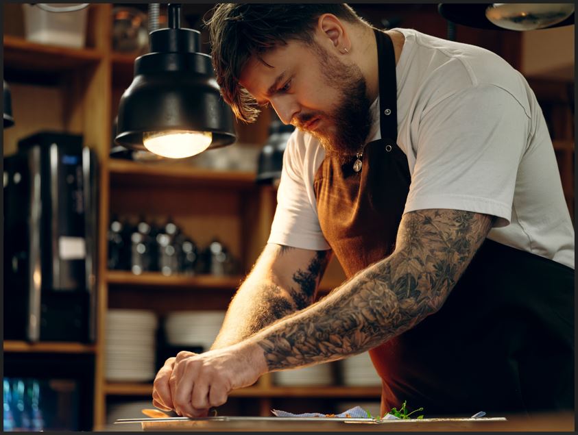 Køkkenchefen hedder Aleksander Jensen og har tidligere tilbragt fem sæsoner på det nærliggende Svinkløv Badehotel. Det er således erfarne kræfter, der står i køkkenet, og det mærker man igennem aftenens menu, som blandt andre serveres af Aleksanders kæreste