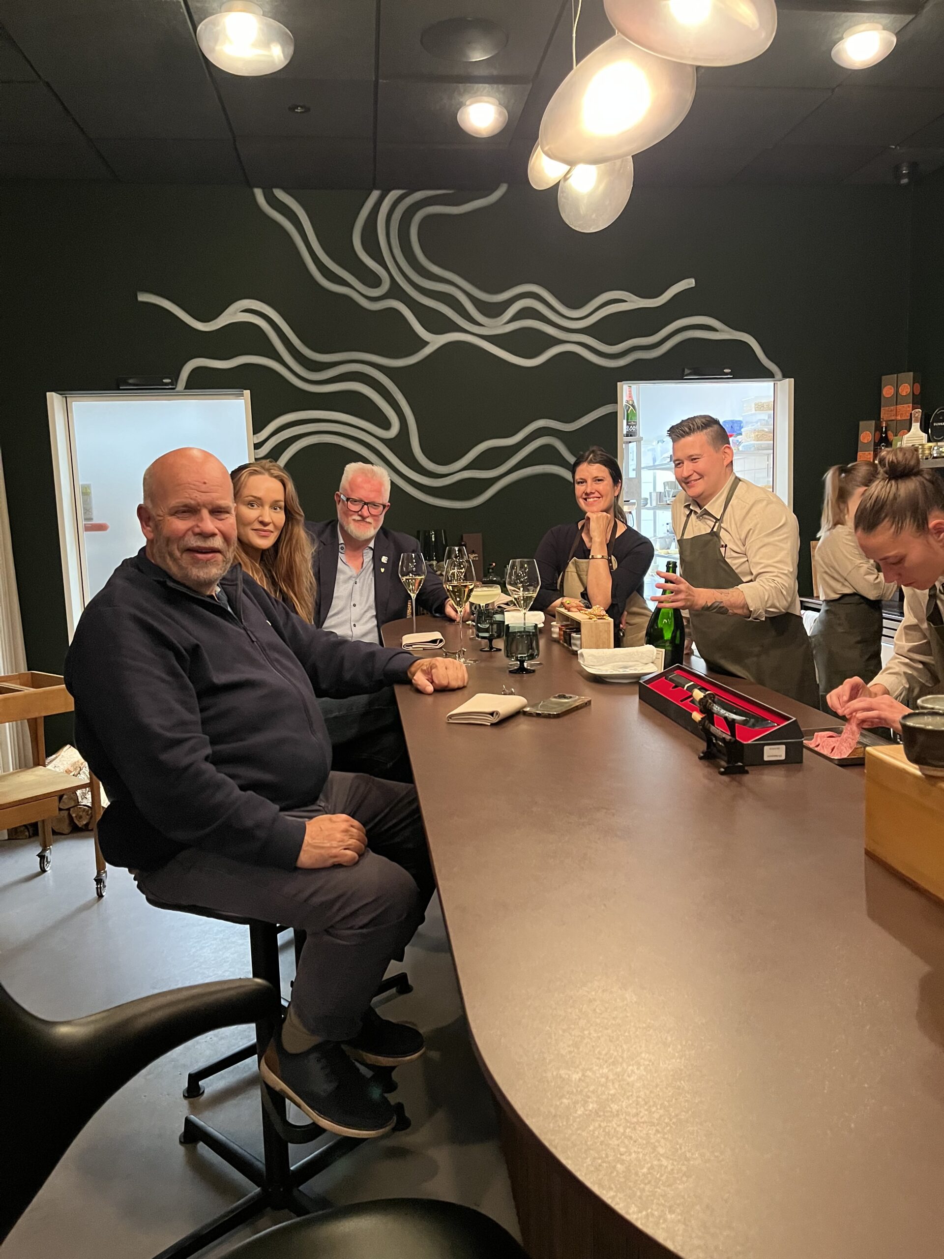 - Skal med hiramasa (Yellowtail) fra Hanstholm og ikura-ørredrogn fra Vejle – vasket i sake og tilføjet frisk wasabi