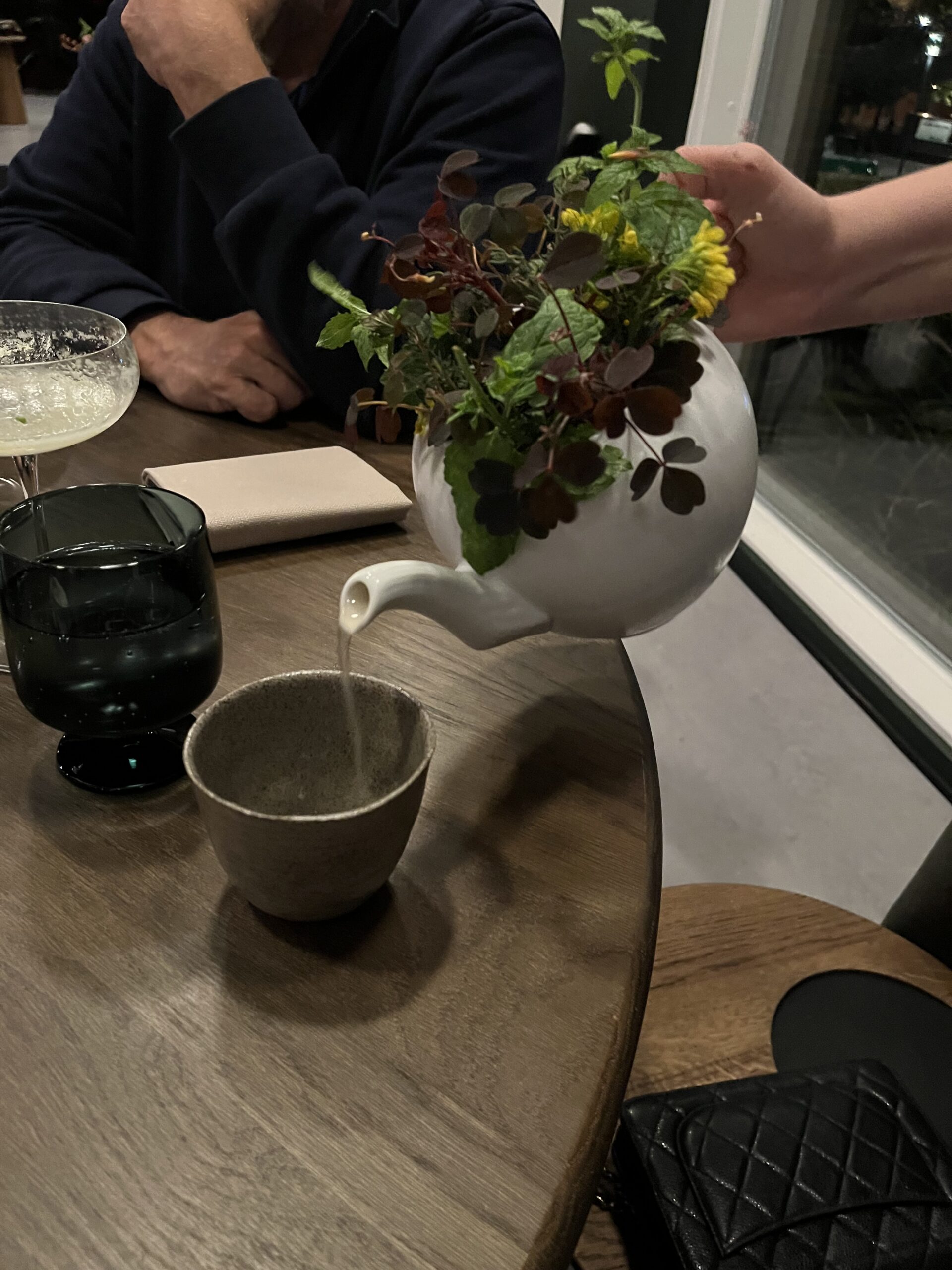 ”Og elegant,” må jeg tilføje her et par dage derpå – i både den visuelle oplevelser og i sine smags- og strukturmæssige balancer. Toppet med fru Nadias og tjenerstabens imponerende opmærksomhed.