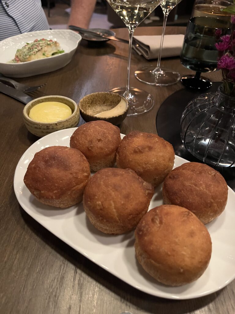Mens belysningen – on location – virker rigtig hyggelig og oplevelsesunderstøttende, så er den sværere at fotografere i med vores mobiler. Blandt vores mange billeder har også sneget sig et enkelt med fra de usædvanligt mange lækre danske, franske og italienske gourmetoste, som dog kun er standard på Bach og Nurups mere omfangsrige Prestige-Menu til op mod 3.000 kr. inkl. de to vinmenu-valgmuligheder på forskelligt niveau. Den må vi i anden kontekst se at få sparet sammen til (igen).