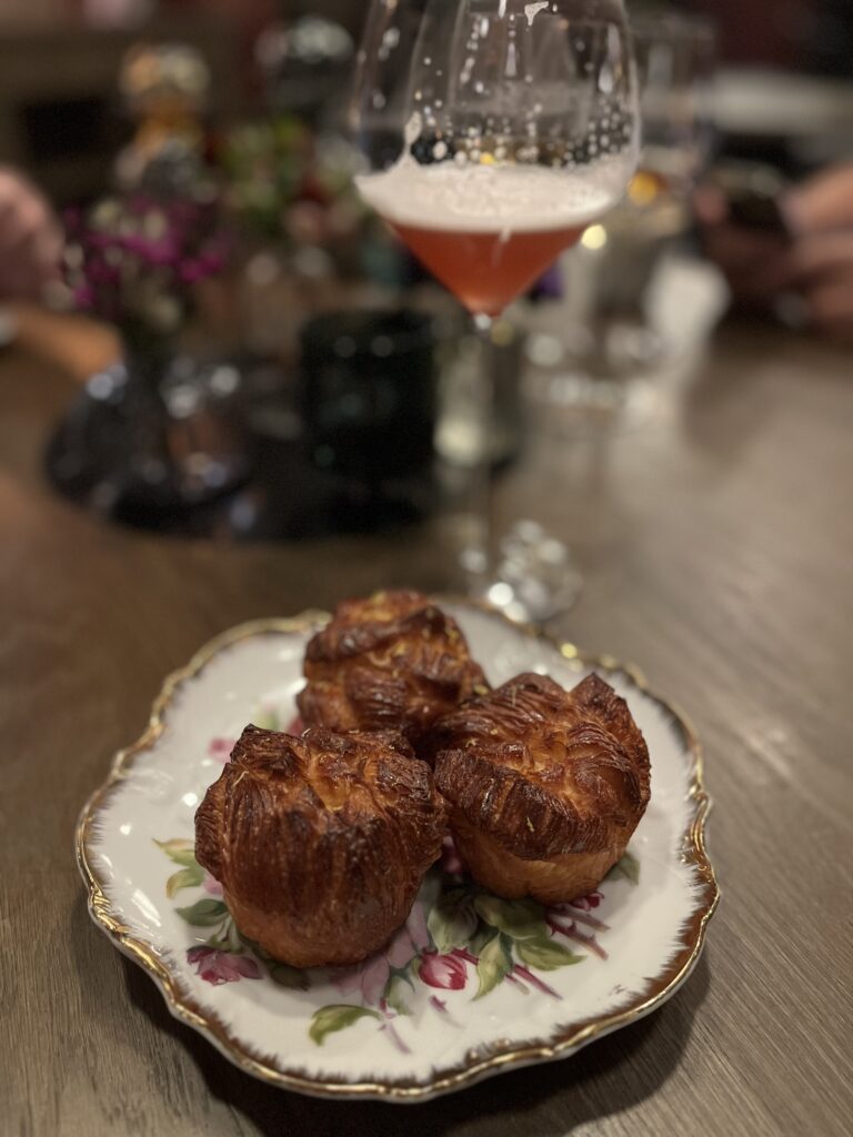 - Monkey-bread tilberedt på hjemmebagte croissanter, der var dyppet i varme krydderier.