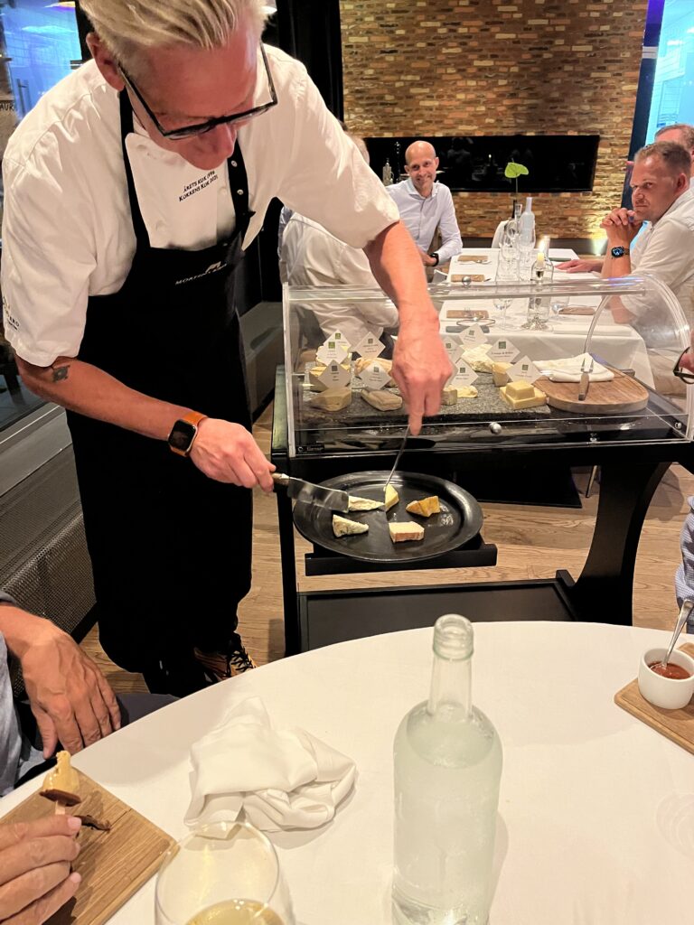 Ved den fjerde servering kunne man også selv vælge, om man ville have sødt eller ostebord. Søren gik ombord i ostene og Mads og jeg valgte den søde, der kom over to omgange.