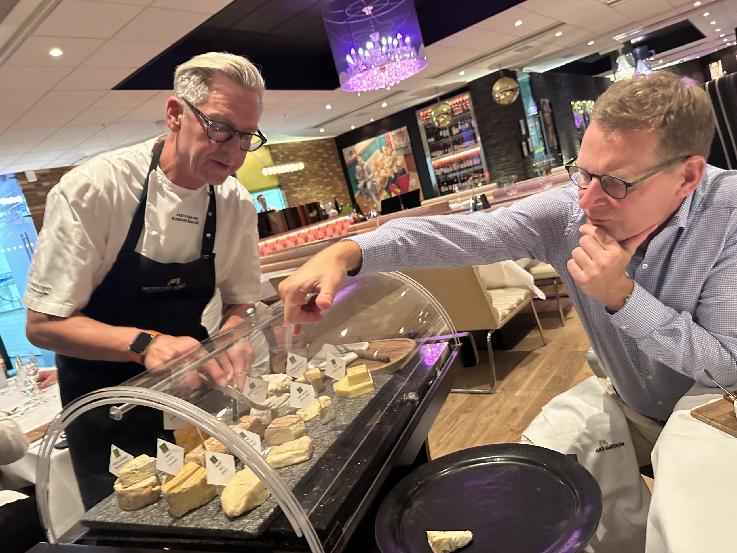 Søren havde kun ros tilovers for ostevognens selvtempererede sortiment af fine franske oste. Det er ikke mange steder sådan en servering tilbydes, og slet ikke i denne kvalitet.