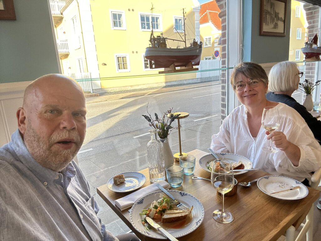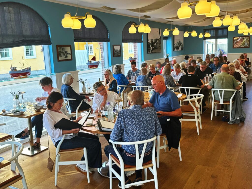 I storfiskerens nænsomt renoverede lokaler har Ronni Glad Sørensen, der selv er barnefødt skawbo, skabt et bredt a la carte-kort, der tilbyder mange mere eller mindre klassiske kvalitetsserveringer fra confiterede brisler og Salade Gourmandise til Tagliatelle surf’n’turf og Ribeye. Men også med en fast sæsonbetonet 3, 4 og 5 retters menu af den slags som Bedst i Nordjylland / Value for money vurderer, og som her virkeligt ligner, hvad man kunne forestille sig, at Fru Andersen, Fie og Amanda anno 2024 i en tænkt sæson 87 af TV2’s Badehotellet ville servere for sine gæster.