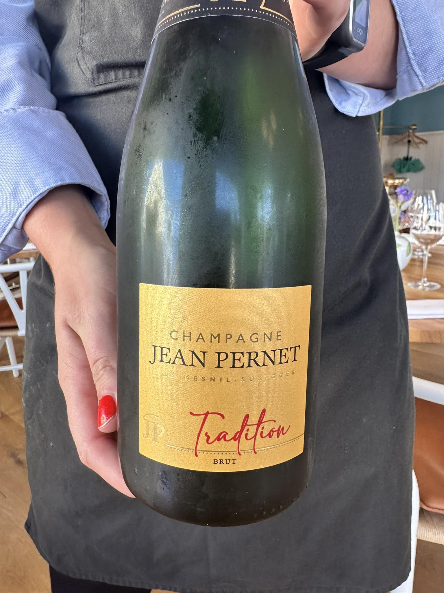 Vores aften var præget af rigtig mange gæster inklusiv en busfuld svenskere, ligesom Kandis Johnny og familie også havde fået bord. Men ikke præget på nogen negativ måde. Retterne kom hurtigt på bordet serveret af de flittige og imødekommende tjenere repræsenterende en række andre nationer end Danmark – vores var en ung svensk kvinde fra Stockholm, der fortalte, at hun var hyret for sæsonen frem til oktober. I starten oplevede vi faktisk pauserne mellem serveringerne lige korte nok, men det vi fik problemfrit reguleret ind. Et lille minus var det, at vores tjener ikke havde ret meget at fortælle om de enkelte retter eller vine. Sådan nogle præsentationer bliver ellers oftest for lange i Danmark – her var de til gengæld lige korte nok.