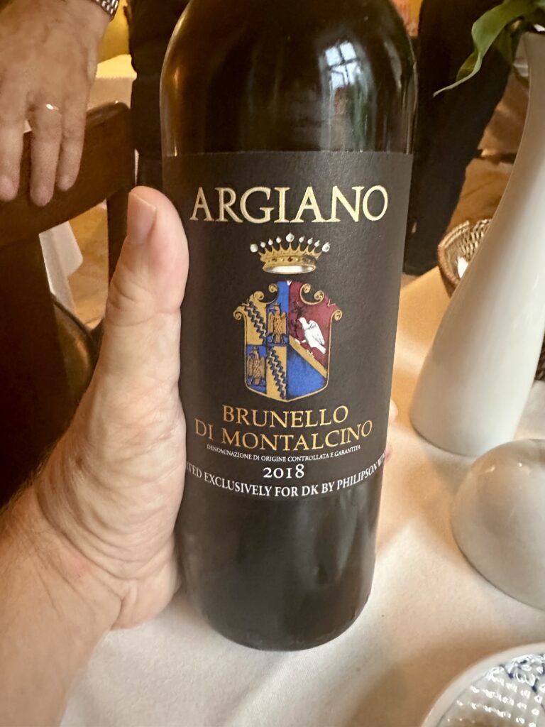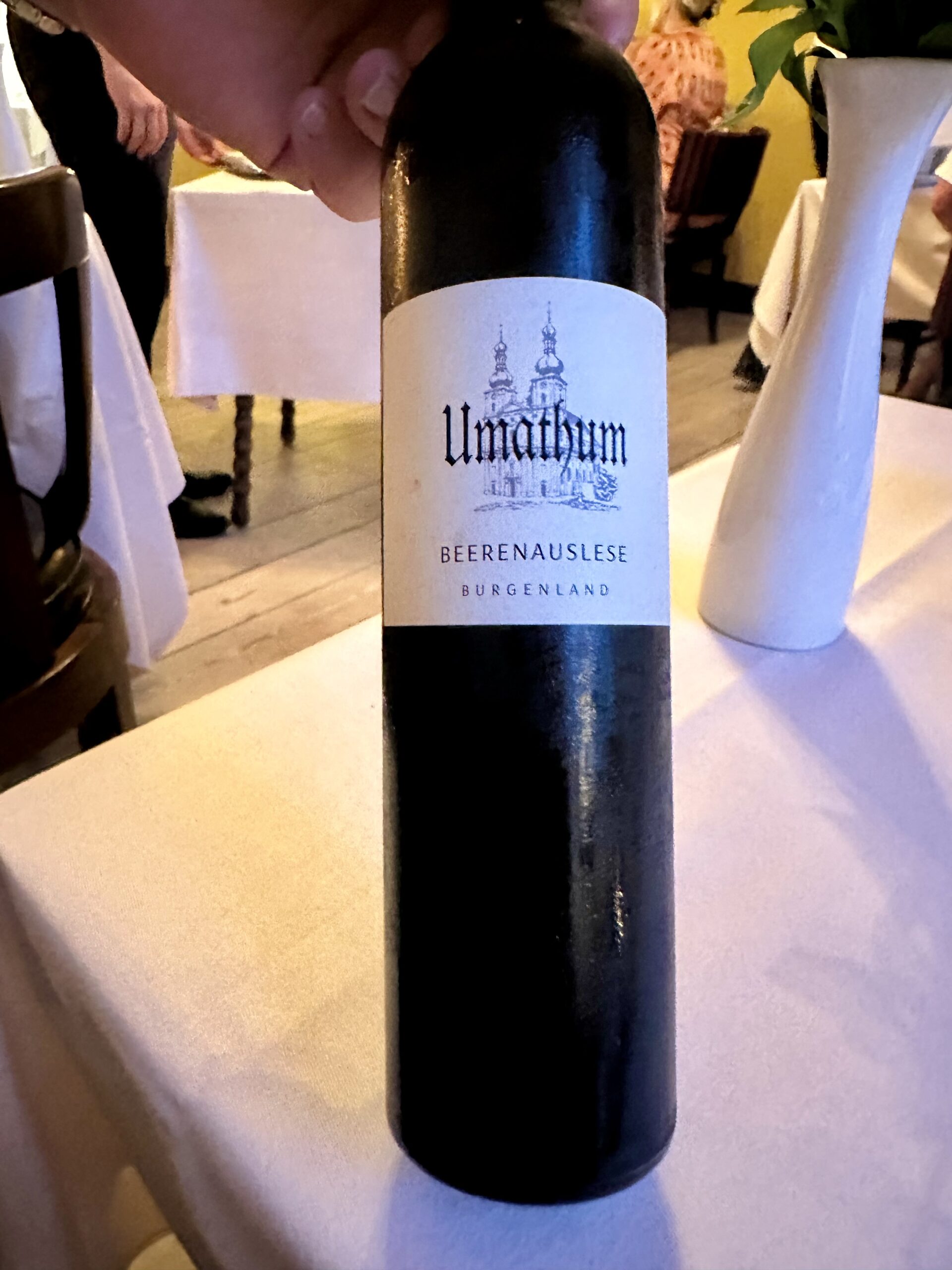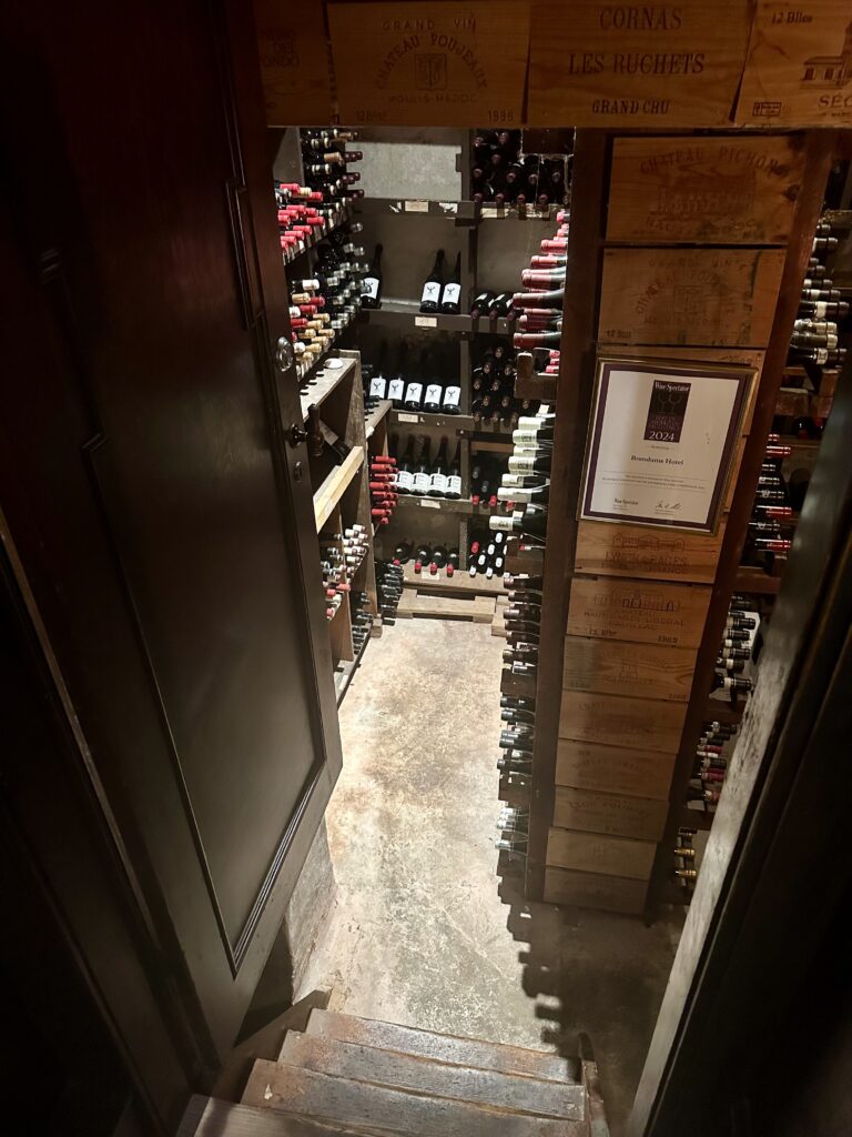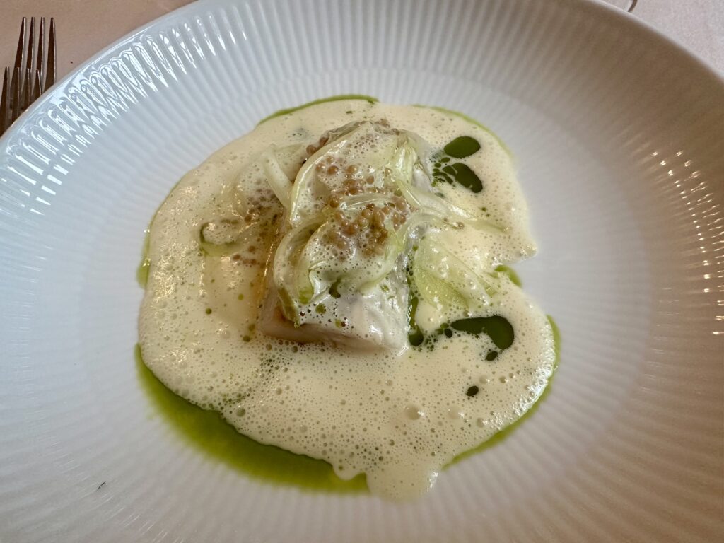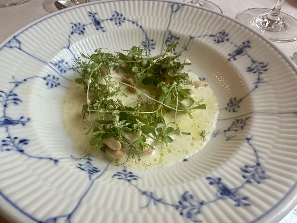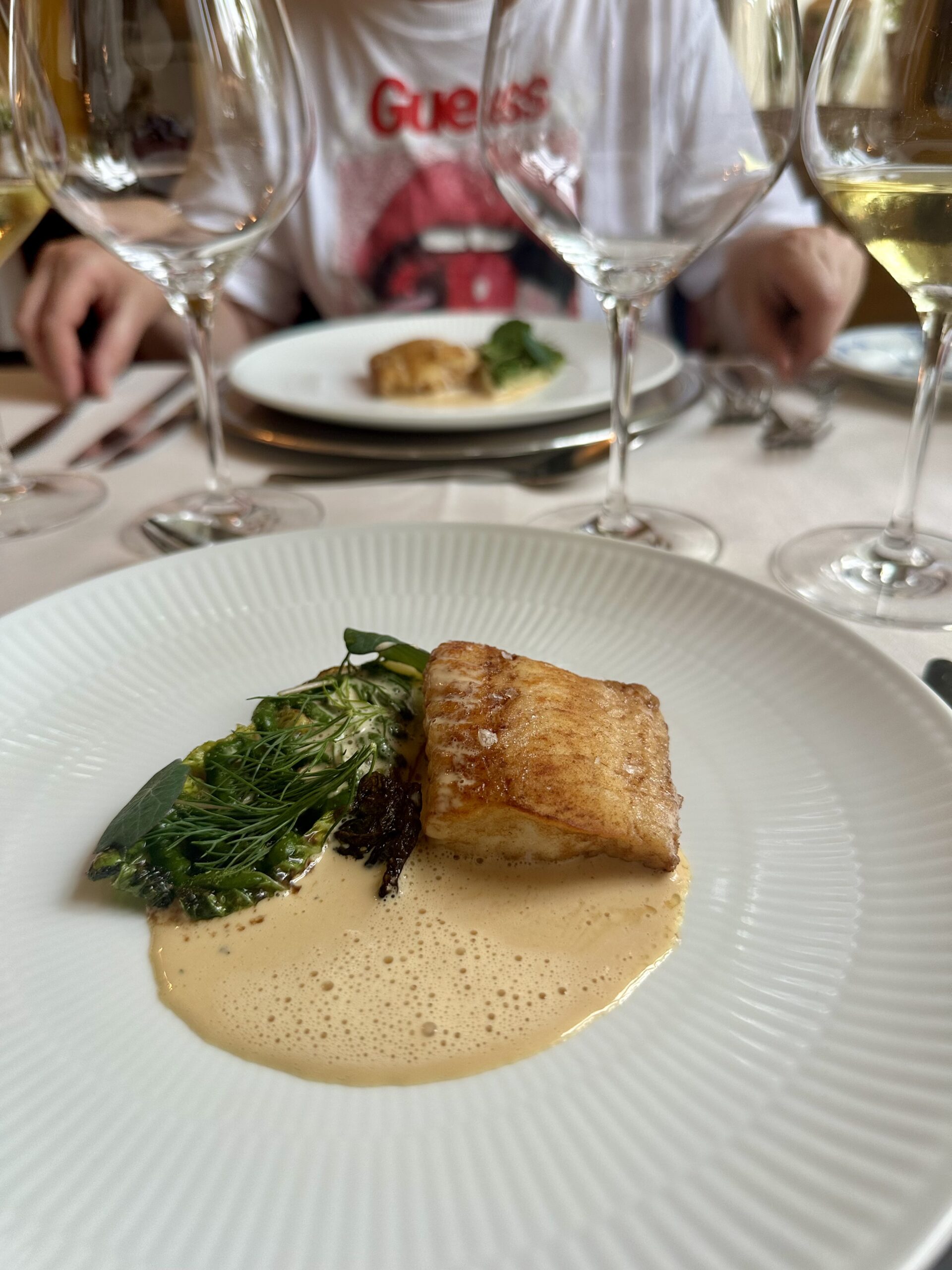 Smagsmæssigt velafbalanceret mums med mums på – og med mere mums til i form af lækre klassiske vinmatch, som I kan se. Vi fik oven i købet lov til at dele en vinmenu, så vi også var i stand til at køre hjem. Hvormed der også indenfor budgettet blev råd til kaffe og hjemmelavet petit four.