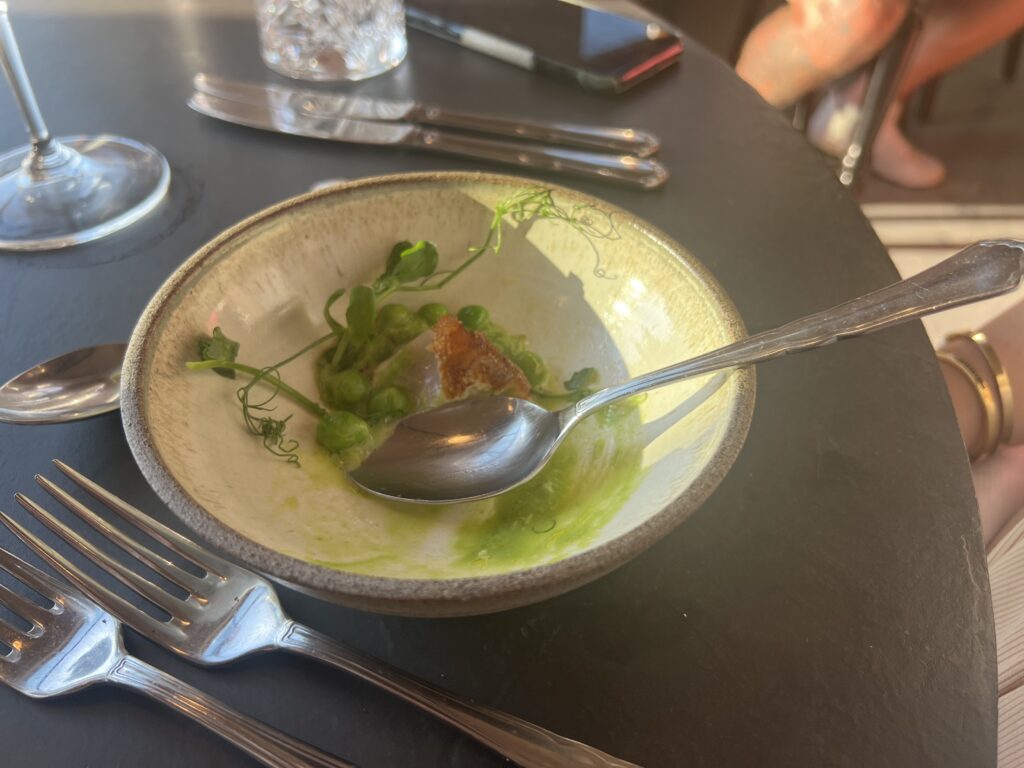 Maden var altså virkelig god, og ikke mindst følte vi os også godt serviceret igennem hele aftenen, og mange fra både køkken og salen var forbi med deres del. Fremhæves skal i den grad de første 3 serveringer, hvor detaljerne både visuelt og smagsmæssigt var i top. Cevichen kunne jeg fint have spist 70 af, og “Rester” viste sig at bestå af en “hummer bisque” på speed! Utroligt velsmagende og rig! Også 70 af den tak! 🙂 Det er ikke store retter, men meget hellere mindre retter med STOR smag, end store retter med mindre smagsoplevelse. Så den er vi helt med på!