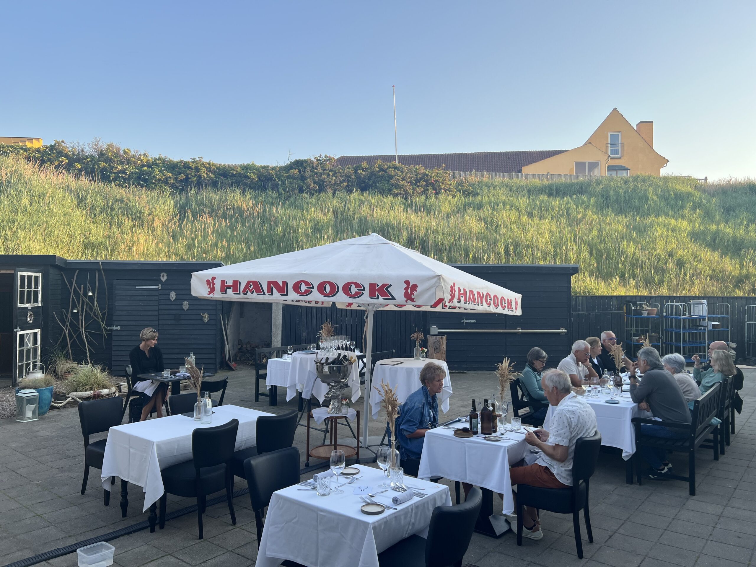 Vi ankommer og vises til vores bord. Dejligt med udsigt til havnen, og faktisk ret mange gæster både ude og inde på stedet i forvejen. En travl dag, men sådan er det jo også ind imellem. Naturligvis også fordi der netop var gang i byen. Vi fandt så også ud af senere, at det største bord på aftenen, faktisk var et bord fyldt med Italienske gæster, der var kommet forbi på deres vej videre nordpå. Skønt! De havde en skøn aften.. .det var tydeligt.