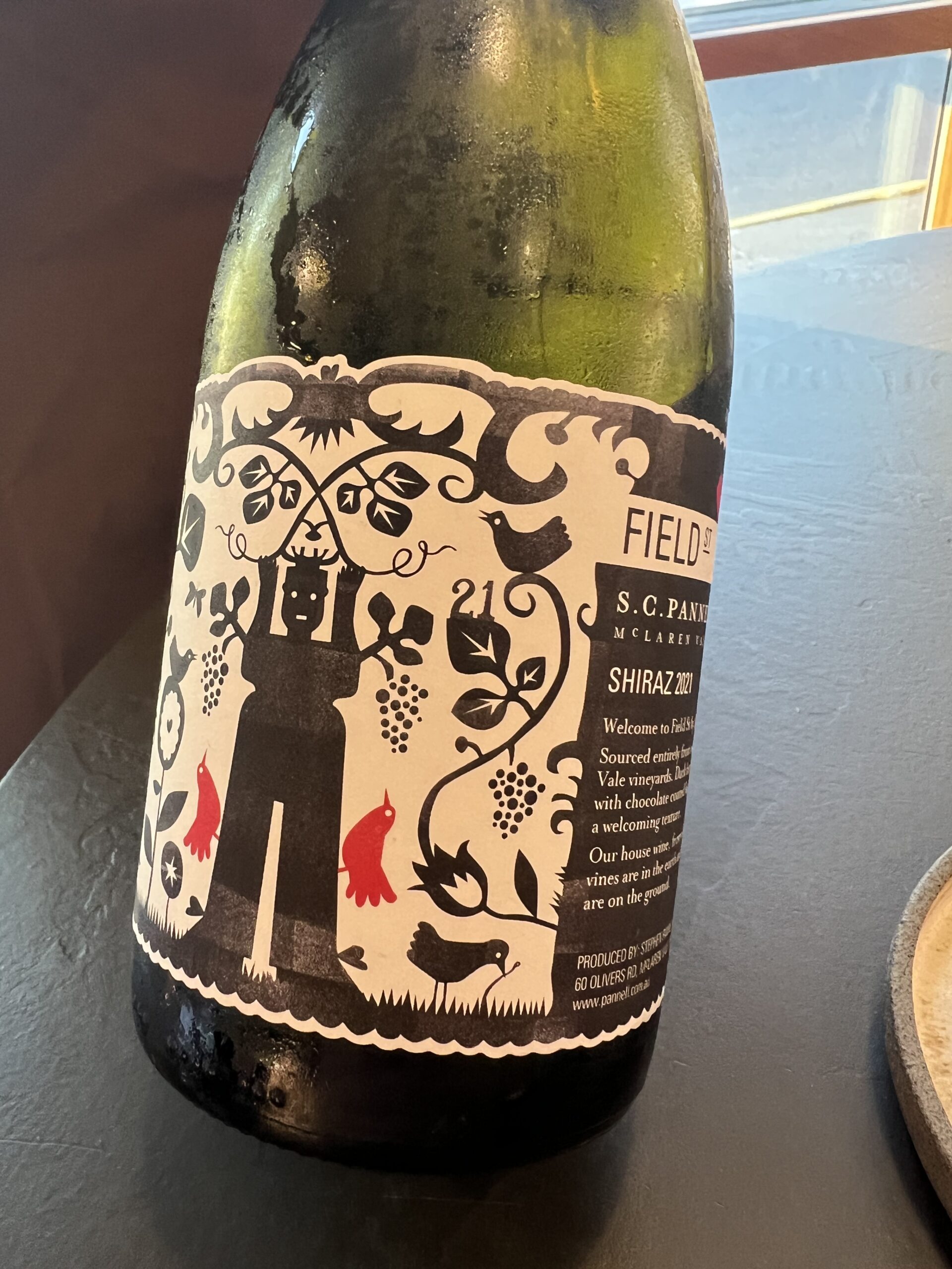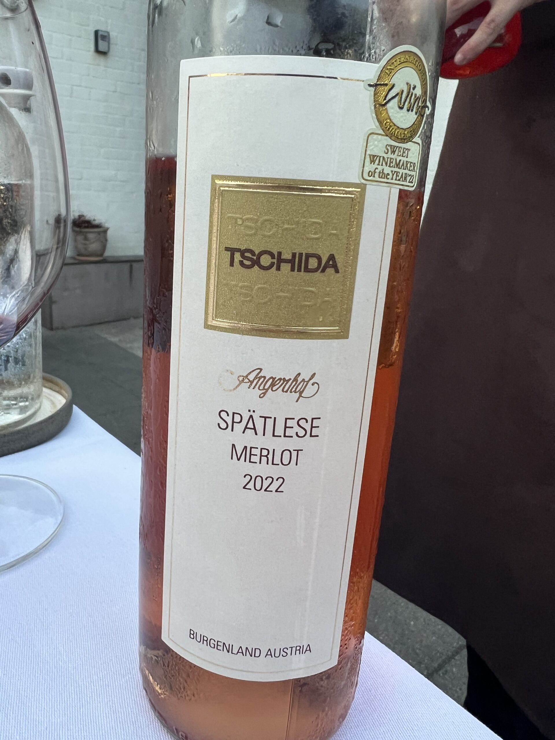 Min medspiser denne aften var fruen, og hun har været rar at tage køre tjansen hjem, så jeg kunne fint bestille både velkomst cocktail og vinmenu. Fruen nøjedes med en enkelt cocktail, og så stod den ellers for hendes vedkommende på saftmenu for resten. Alt var i den skønneste orden vedr. de drikkelige elementer i øvrigt. Ikke mindst var fruen meget glad for sin “Creme Brülé”-cocktail – med smeltet sukker og det hele. Lækkert! Og der var i den grad leget med mange sjove og gode elementer i saftmenuen, der passede godt til retterne. Vine kan ses i billederne, og det match fejlede heller ikke noget på dette niveau. Fremhæves skal husets “egen” Riesling (i hvert fald på etiketten), samt den fine Spätlese vi fik til desserten!