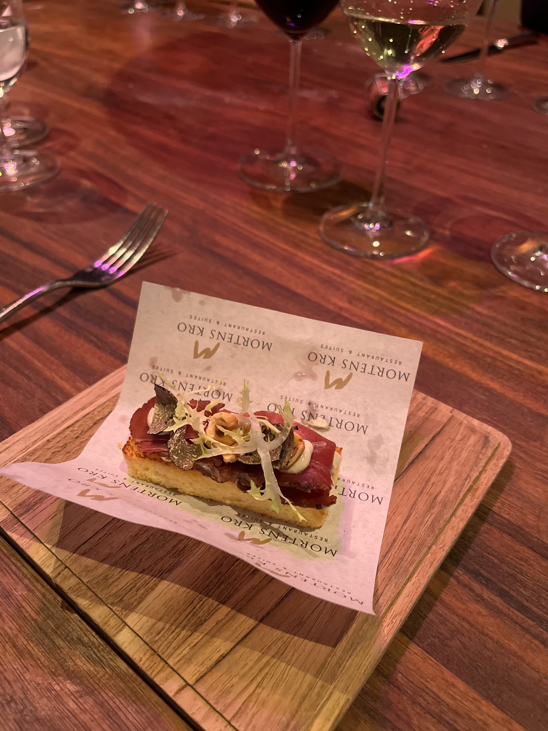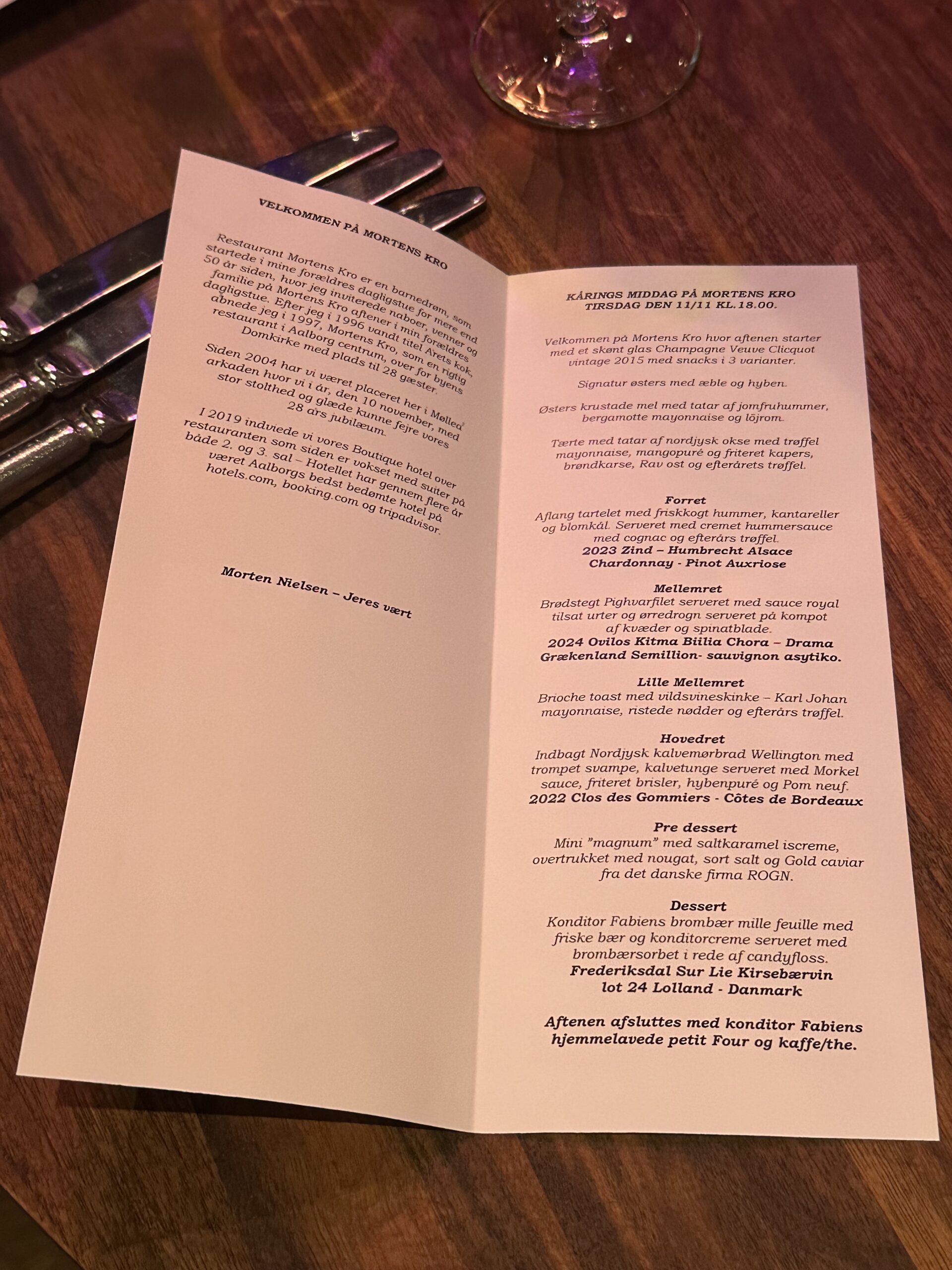 I min egen forholdsvis korte motiveringstale – efter hovedretten – for overdragelsen af det indrammede vinderdiplom – gjorde jeg opmærksom på Mortens Kros 28 år lange historie og dermed Aalborgs længst eksisterende gourmetrestaurant – og det niveau og den stabilitet, som stedet alle årene har holdt. Det var dog netop ikke på gamle meritter, at sejren i 2025-udgaven af vores hyldest-konkurrence til den nordjyske gourmetrestaurantscene er vundet. Men netop på det aktuelle niveau på dagen vurderet på vores to uanmeldte besøg undervejs – indledende og semifinale runde.