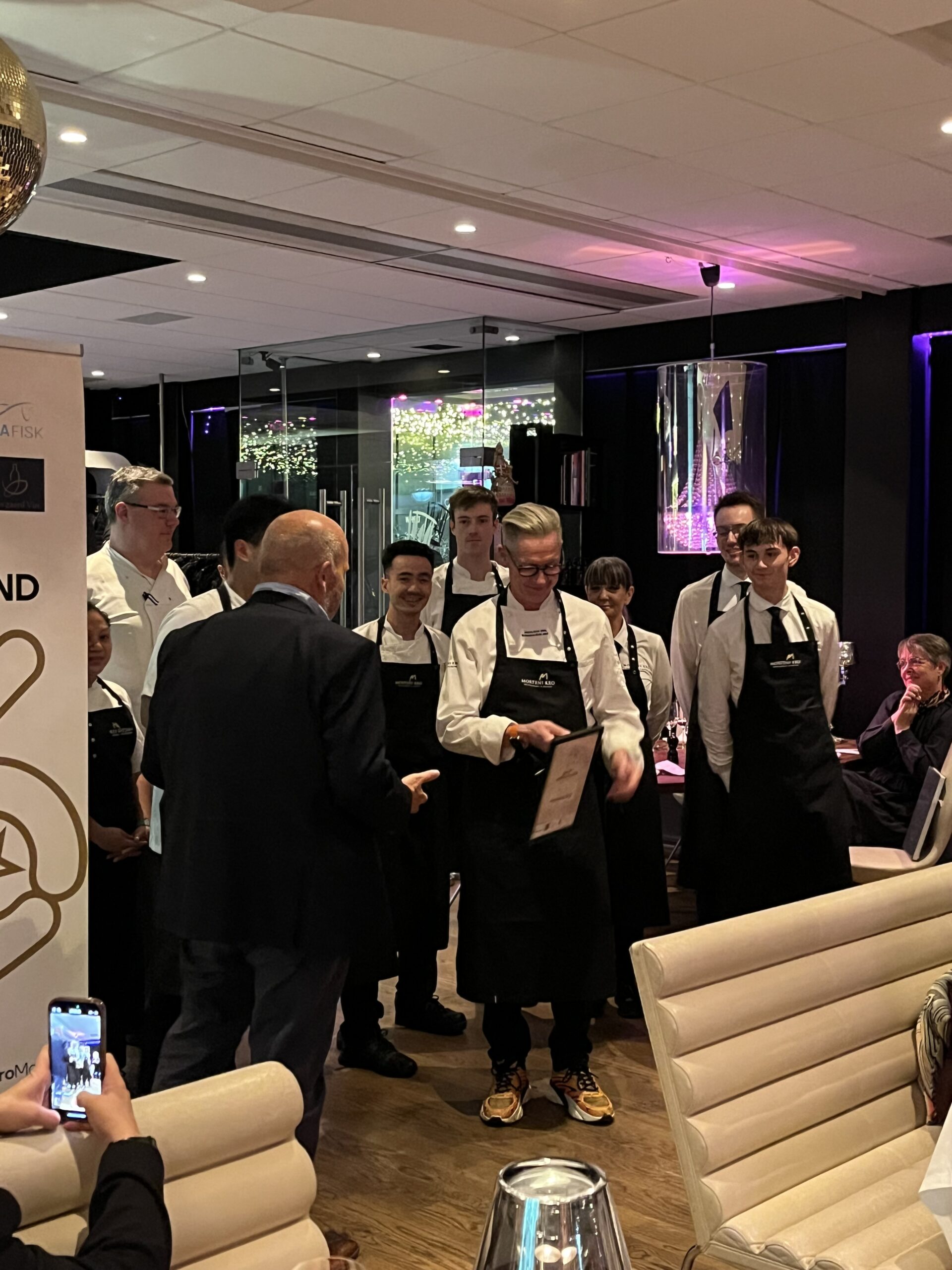 Gæsterne – heri blandt også en del af vores sponsorer, der jo dækker ind for juryens omkostninger sæsonens igennem – kunne glæde sig over, at de enkelte serveringer i aftenens anledning vist lige havde fået en tand mere kaviar etc. eller glassene lidt flottere drue, end Morten til daglig kan få økonomi i at servere til den pris. Tak for det, kvitterede de mange fremmødte med stående applaus.