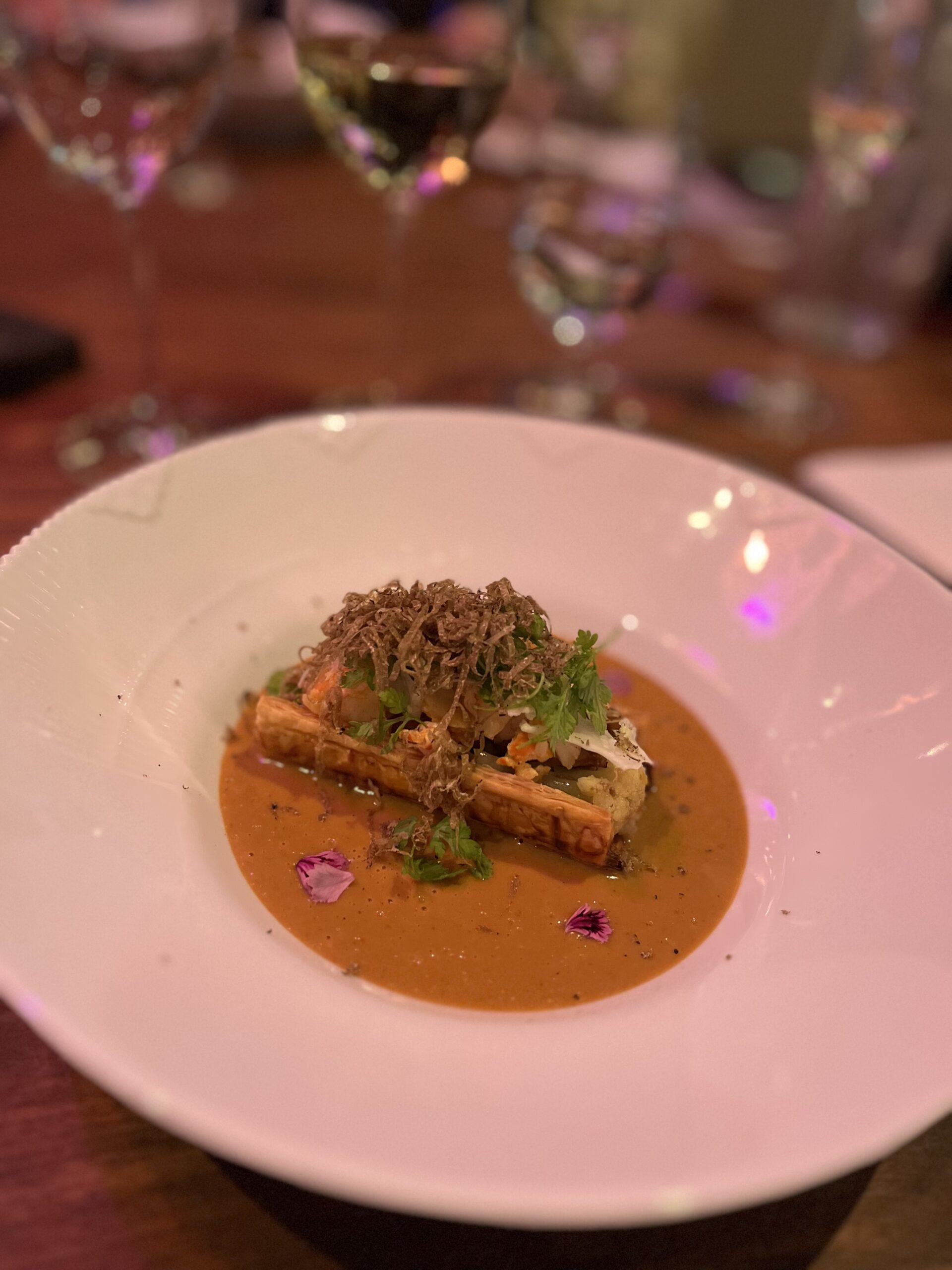 Tjek vores billeder og sammenhold med menukortets beskrivelse – det var bare super delikat. Der kunne fortælles meget om alle serveringer – her vil jeg nøjes med at fremhæve forretten: Med rektangulær tartelet fyldt med friskkogt hummer, kantareller og blomkål. Serveret med cremet hummersauce med cognac og toppet med efterårstrøffel: En smagsmæssig og visuel bombe af en signatur, som juryen også tidligere havde vurderet som hele konkurrencens bedste servering. Og samtidig tak til mine medjurykolleger: Laura Sahl, Michael Jul Jensen og Søren Hjortshøj for jeres aldrig svigtende engagement. Vi prøver igen næste år.