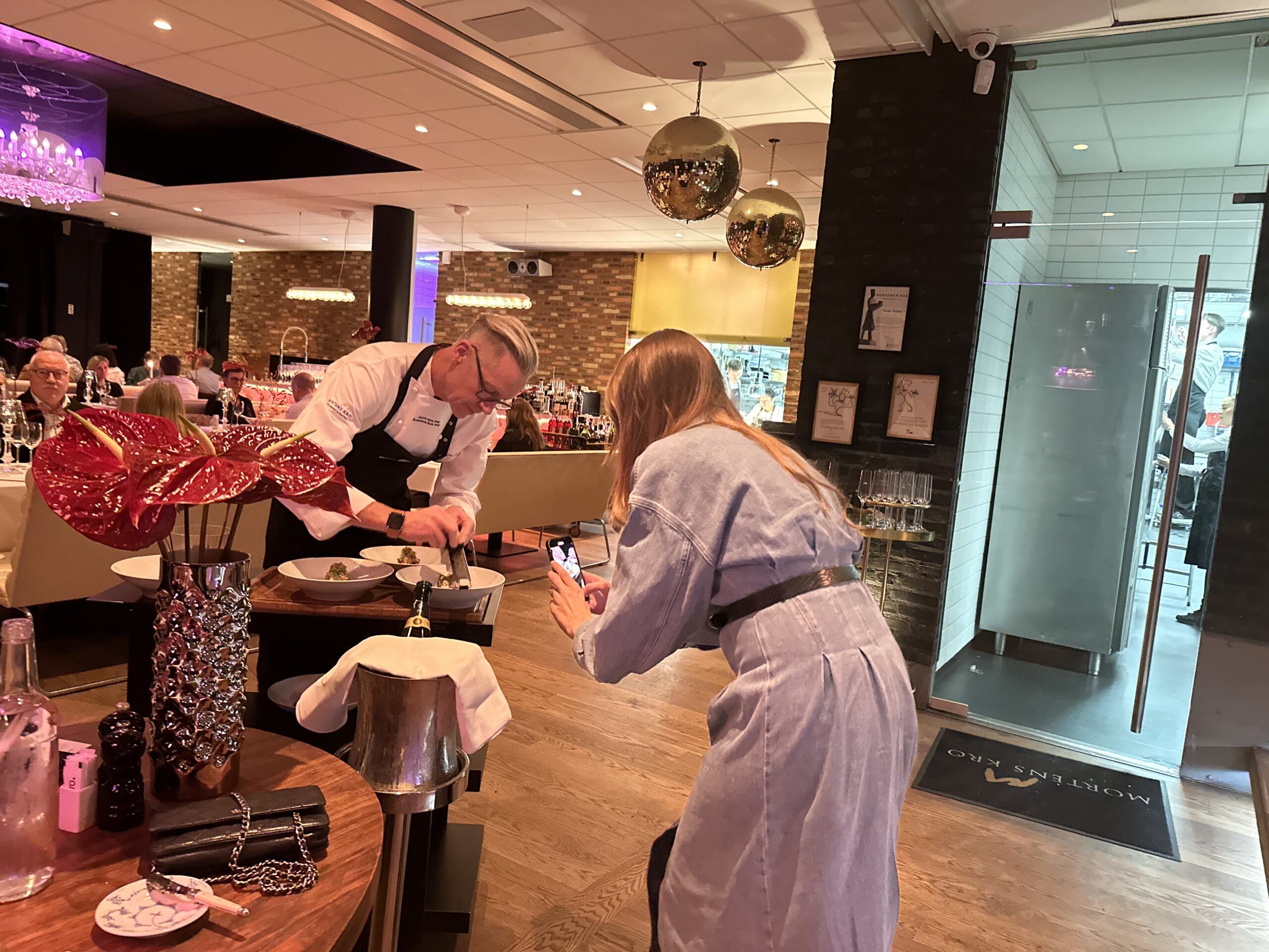 Aftenens fremragende menu (se kortet blandt illustrationerne) havde Morten Kok som sædvanligt kreeret og hans fine team – med køkkenchef Thanh Duy Mølgaard og konditor Fabian Chevreuil i spidsen – udført og serveret – indenfor konkurrencens kendte prisramme: Op til 1500 kr. inkl vinmenu.